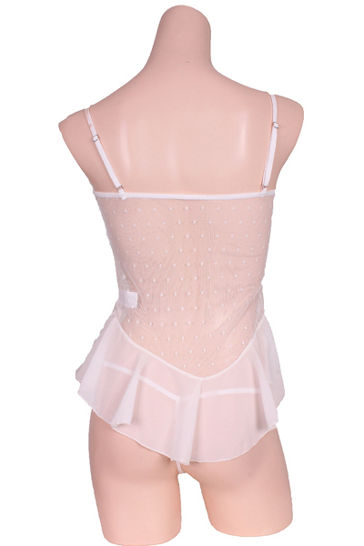 フリルとレースで可愛さ増しベビードール&Tバックセット ホワイト ホワイト