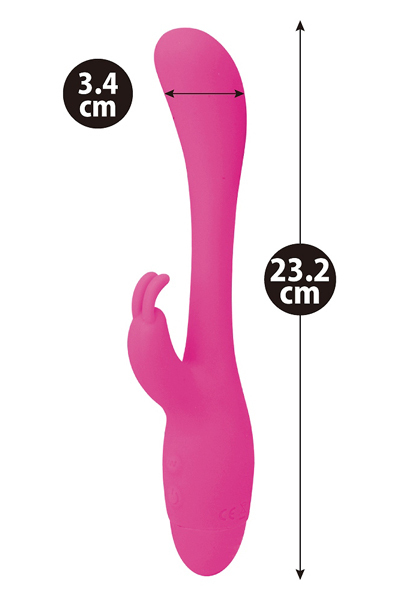 鞭のようにフレキシブルに曲がるという、これまでに余り類を見ない画期的な挿入シャフトを備えたGスポバイブです。先端部分とクリバイブに内蔵されている強力モーターが生み出すバイブレーションは圧巻!滑らかな肌触りのシリコン製ボディは挿入しやすく、先端はぷっくりと膨らんでいてGスポットを狙いやすく、クリバイブはうさぎの耳の形となっているためしっかりとクリを捉えてくれます♪挿入すると穴道に合わせて追随するフィット感バツグンの先端構造は思わず垂涎モノ!10パターンもの豊富な振動に動同期する挿入部とクリバイブは、どちらも生活防水仕様なので使用後のメンテンス性にも大変優れています。
