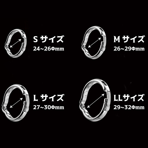 煮沸消毒でいつでも清潔に使える金属製の男性補助用ペニスリングが登場しました♪内径は2.7〜3.0cm、状態に合わせて5段階の微調整が可能。リングの内側に埋め込まれた6つの磁石が血流UPを促進、男性の象徴を力漲る猛々しい股間へ導けるようにサポート!デザインにも優れたメタル製のリングは尿道を圧迫しないため排尿の邪魔にもならず、長時間の装着でも快適にお使いいただけるペニス増強グッズです♪使用後のメンテナンスは、水洗いをして煮沸消毒にて殺菌消毒をおこなってください。