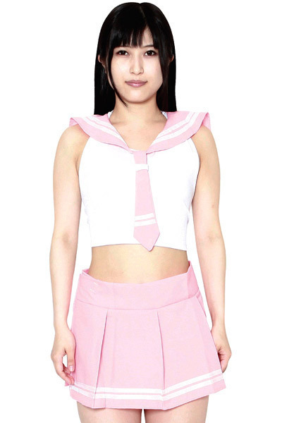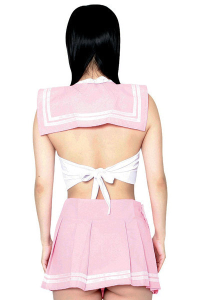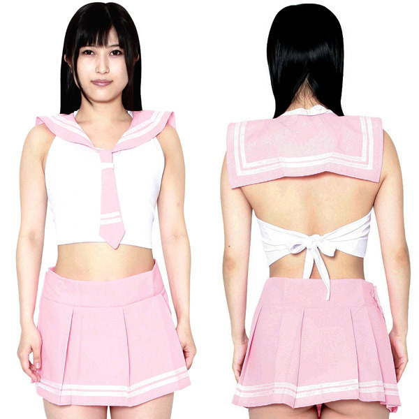 淡いピンクがキュートで可愛い!露出度高めのセーラー風コスプレ衣装がエロコスより登場。マイクロ丈のプリーツスカートと、背中で結ぶタイプのストレッチトップスの2点セット♪大きく開いた背中や短めのスカートから覗くヒップなど、後姿にドキッとするエロ可愛いセーラーコスプレです。