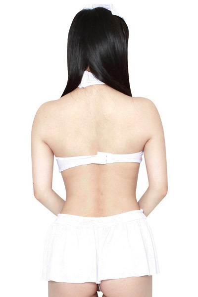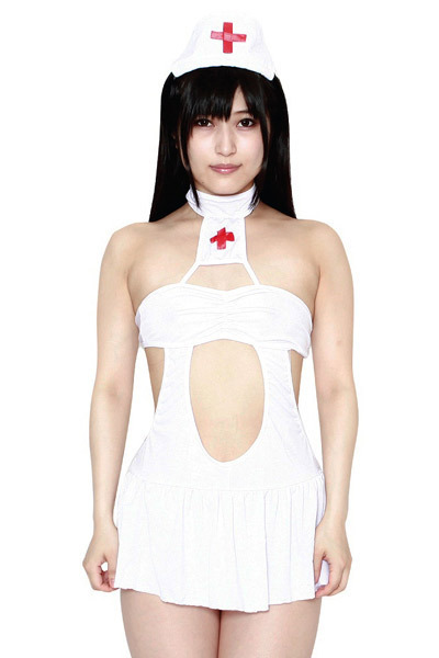大胆不敵な肌見せでセクシーに誘惑するホワイトカラーのナースコスプレ。バストをしっかり押さえる背面ホック仕様!カチューシャと胸元には可愛らしい赤い十字マークが施されています。コチラはミニ丈ワンピとTバック、ナースキャップ風カチューシャの3点セット!