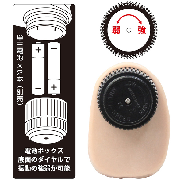 生々しいリアルな男根が貫く!仁王のごとくそそり立つ5.5cmの極太バイブ。逞しく中折れしない硬質なボディ!強弱は回すだけのダイヤル式調整で初めてでも簡単に操作可能♪超激震を繰り出すハイパワー振動でGスポを責めに責めまくれ!電池式(単3電池を2本使用)