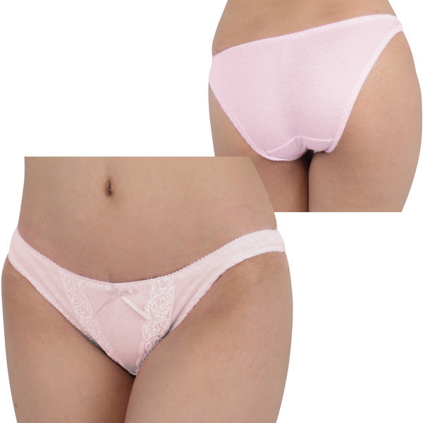 締め付けすぎない優しい着け心地。肌触りの良いコットン生地を使用したピンクカラーの日本製フルバックショーツです♪フロント部分にピンクのリボンとレースをあしらった可愛らしいデザイン。日常使いはもちろん、アニメコスプレを楽しむ際にも最適!