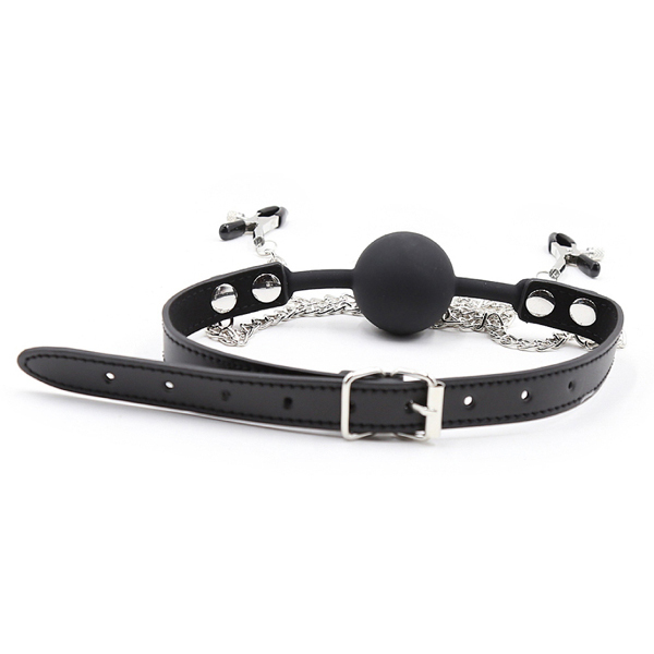 SMグッズで人気のブランドSMVIPからミックスアイテムが登場!簡単な拘束感が味わえることで人気のボールギャグとニップルクリップが一体となりました♪直径4cmのボールギャグを咥えさせることで口内の自由を奪う!涎は自然と滴り落ち、同時に乳首を挟んで責める。そんな卑猥なプレイにお勧めのミックスアイテムです♪口枷は合皮製のベルトでサイズ調整が可能!男女で装着出来て、口内を圧迫することができるでしょう。口枷から伸びたチェーンは40cmの長さがあり、先端のクリップにはゴムカバーが付いているので跡が残りづらく、締付けの強弱も調整出来ます♪