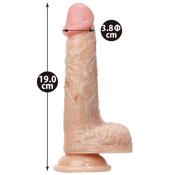 浮き立つ青筋と血管、超リアル肉感極上バイブ●6パターン振動機能●人肌温感機能●先端と竿周りは柔らかな肉感●竿の芯は本物のような弾力を残しつつ怒張の肉感●二層構造で挿入感もリアルに再現●超強力吸盤付き●生活防水
