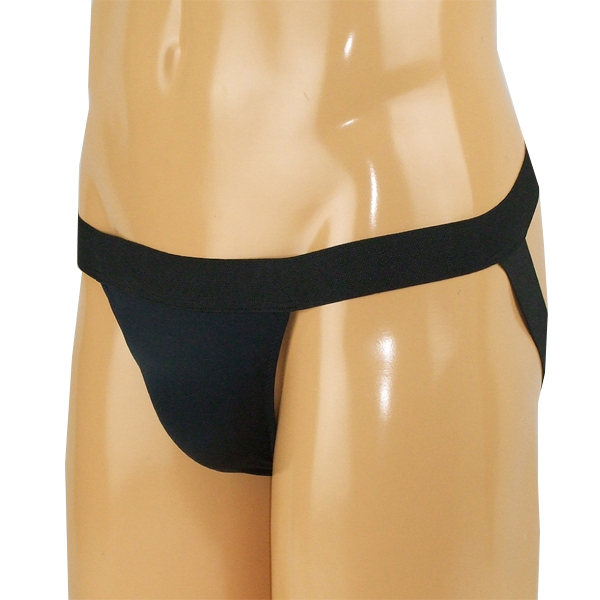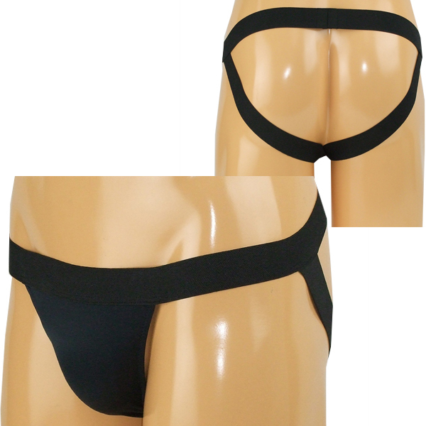 程よいフィット感と開放感が味わえる日本製のメンズ用Oバック(黒)。伸びの良いストレッチ素材と太目の平ゴムでウエストと男性の象徴をしっかりホールド!安定した穿き心地を生みだす男性用Oバック。