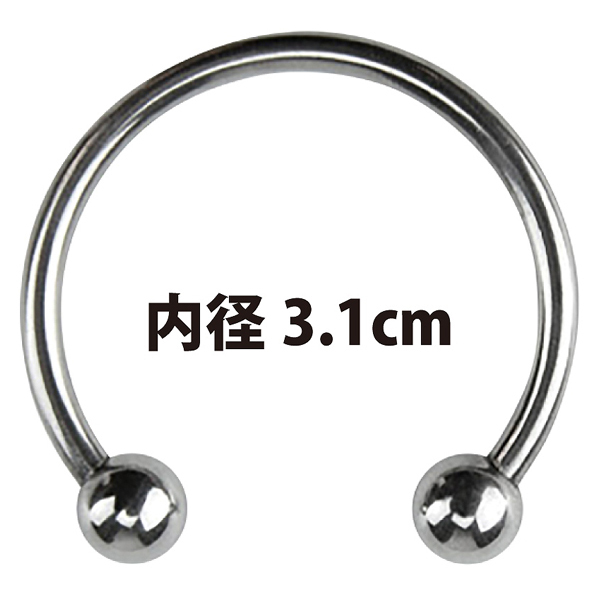 スタイリッシュなメタルデザインが男の魅力を引き立たせるステンレス製のペニスリング。C字のリングがカリ首を拘束、アクセントとしては勿論、包皮部分を固定するほか2つのプレッシャーボールがパートナーに刺激を与える!