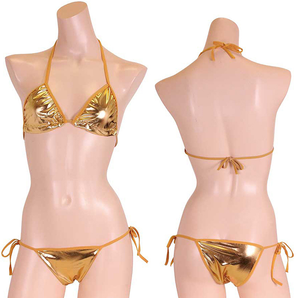 夏の海で美ボディを魅せつける!メタリック生地の存在感抜群なゴールドビキニ。太陽も羨む輝きで男の視線を独り占め♪金色カラーの華やかな紐ビキニを着れば、誰もが貴女に注目する!※こちらの商品は受注発注商品の為、ご注文から発送までに3、4営業日掛かる場合が御座います。