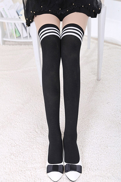 制服コスプレに、いつもの私服に!可愛さを際立たせる3本白ライン入り黒ニーハイ。肌触りの良いアンゴラと上質なラムウールを混ぜているので穿き心地抜群!コスプレは勿論、普段着と合わせるだけで可愛さUP♪※こちらの商品は受注発注商品の為、ご注文から発送までに3、4営業日掛かる場合が御座います。
