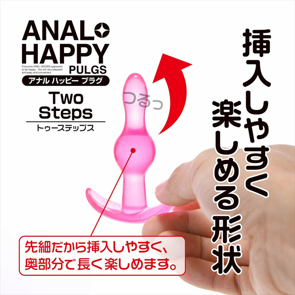 アナルハッピープラグは初心者にオススメしたい小型のアナルプラグです。トゥーステップスは挿入に適した先端部と、内部で存在感を発揮する中心部の二段構造です。アナルプラグの王道を行くこの形状は、アナラーなら一度は経験すべきでしょう。また挿入時に役立つストッパー付です。アナルの幸せを願う全ての人にお贈りします。