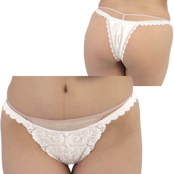 光沢ストレッチレース刺繍ハーフバック (ホワイト) ホワイト