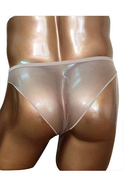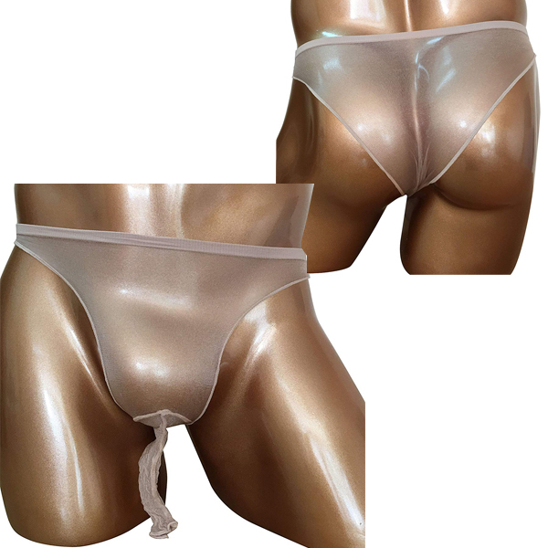 前も後ろもスケスケ!露出度満点なおちんちんポケット付きメンズ用ストッキング風パンツ。肌触り柔らかく伸縮性抜群なパンスト素材を使用!光沢感と透け感が男の下半身をエロティックに魅せつける♪手洗いまたはネットに入れて洗濯してください。