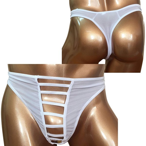 フロント部分だけ大胆にオープン♪開放感が味わえるメンズ用Tバック(白)。男の象徴に目が釘付けになる過激なデザインが特徴的!逞しくセクシーに魅せるならこのメンズ用ビキニパンツを是非どうぞ♪洗濯の際は優しく手洗いするか、網ネットに入れて洗濯してください。