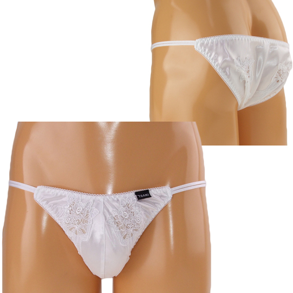 > メンズ 光沢ストレッチ生地レース装飾フルバック ホワイト