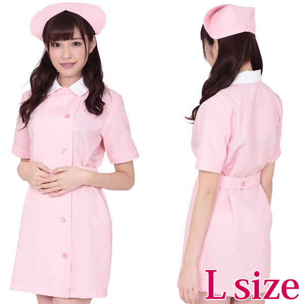 淡いパステルピンクで魅力倍増♪可愛いけど、どこか大人の色気を感じさせる人気のミニ丈ナース服に大きめサイズが登場!ナースキャップが付いた本格派デザイン♪病気の時には天使のような微笑みで癒してくれそうな可愛いナースコスプレです。