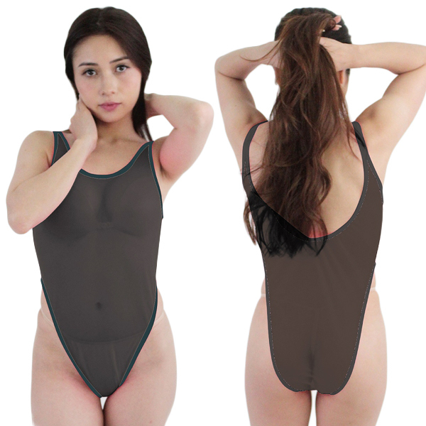 超極薄仕様で全部丸見え!?スケスケのシースルー生地でセクシーに仕上げたハイレグコスプレ(黒)。深めのハイレグカットに大胆な露出で自慢の身体を魅せつける!生地のスケスケ感がたまらない日本製レオタード。お気に入りのニップレスと組み合わせても◎