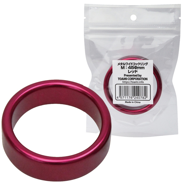 イケてる男は見えない所にも磨きをかける!メタリックな輝きを放つ赤色のペニス専用リング(内径4.5cm)。内側までお洒落を楽しみたい男性に♪アルミニウム合金製の重厚感のあるコックリング。吊り付き透明パック付き