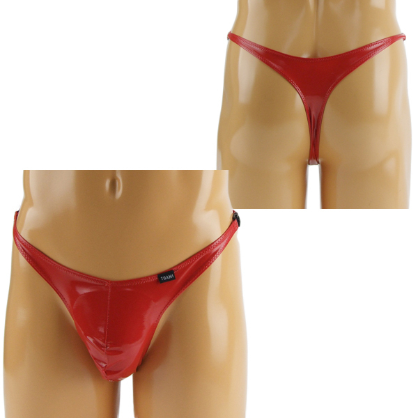 メンズ エナメル両サイドワンタッチバックル付きTバック レッド レッド