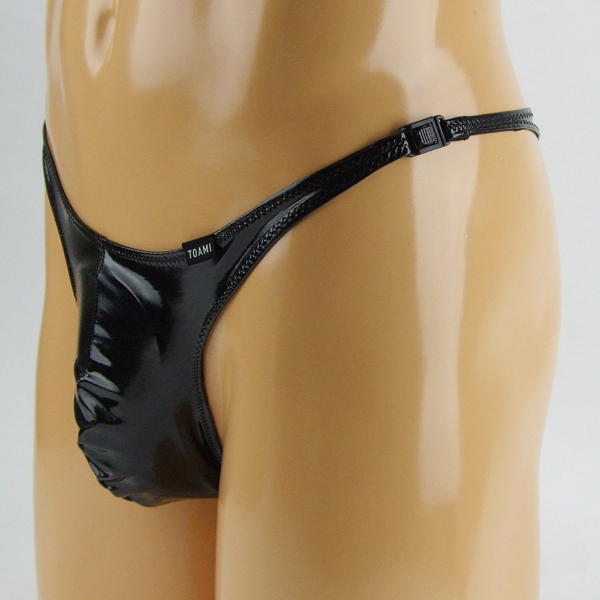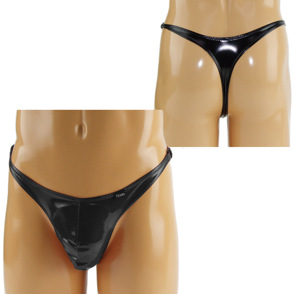 メンズ エナメル両サイドワンタッチバックル付きTバック ブラック ブラック