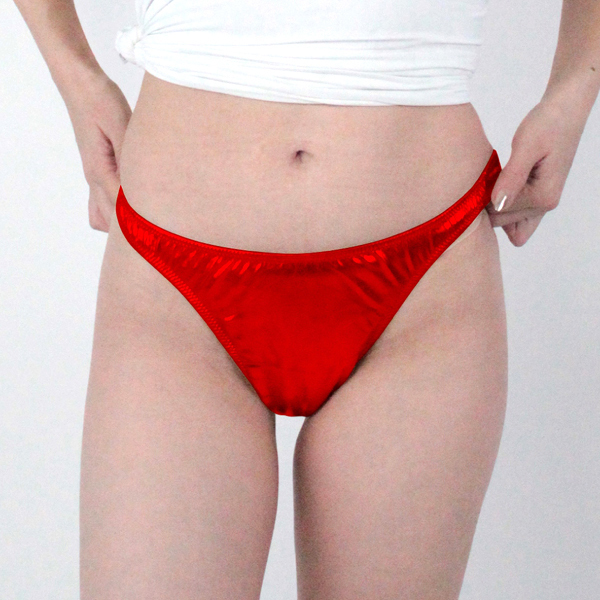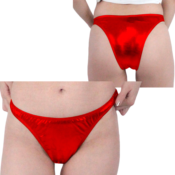 赤のメタリック生地がインパクト大!ボトムスに響きにくい日本製ハーフバック。生地特有の光沢感と身体の曲線を際立たせるデザインで女性の魅力をUP!伸縮素材仕様で穿き心地抜群のレディース用ハーフバックです。Mサイズ