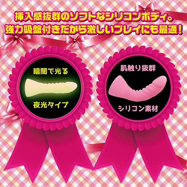 暗闇で主張する挿れ心地の良い夜光仕様のシリコンディルド。柔らか素材のもっちり弾力のある質感と凹凸が刻まれた蛇腹ボディで中を刺激!底部にはぴたっと吸着する強力吸盤付きで、床や壁などに取り付けることも可能です。
