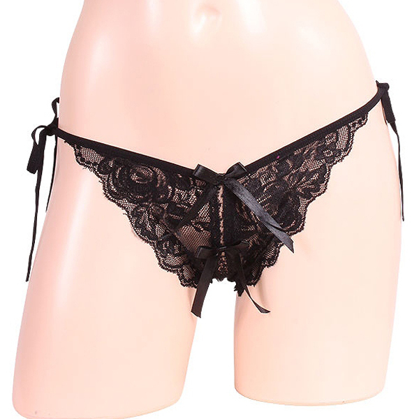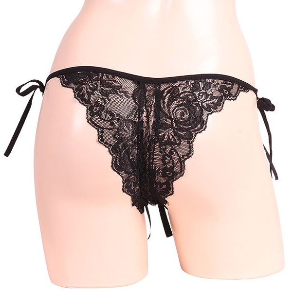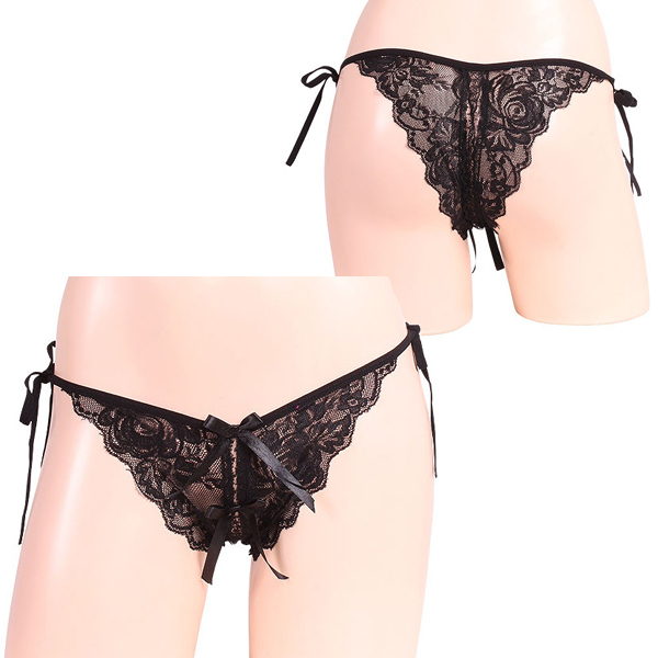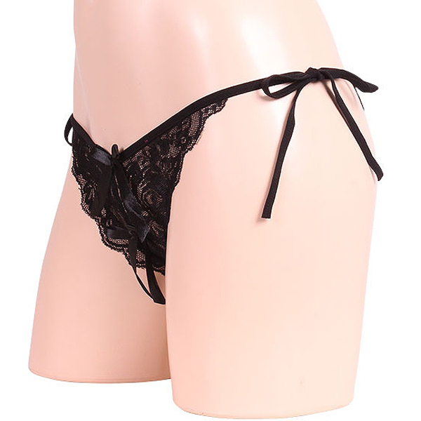 > 女らしさ満開サイドリボンオープンショーツ ブラック
