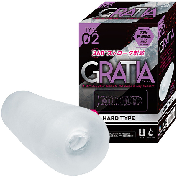 360度ストローク刺激!細部までこだわった究極の内部構造。グラツィアとは「優美」「上品」を意味し、透明すぎない純白ボディで美しく品のあるオナホールです。伝説の造形技師が細部までこだわった360度のストローク刺激でバキュームが楽しめる非貫通型ホールです。<TYPE02>イボとヒダが交互に締め付け搾り取る!巨大イボの肉壁がゴリゴリ押しつぶす極上の贅沢快感。細かな横ヒダ粘膜がねっとり絡みつき引きずり込む。波打つ横ヒダでじょりじょりかりあげる!