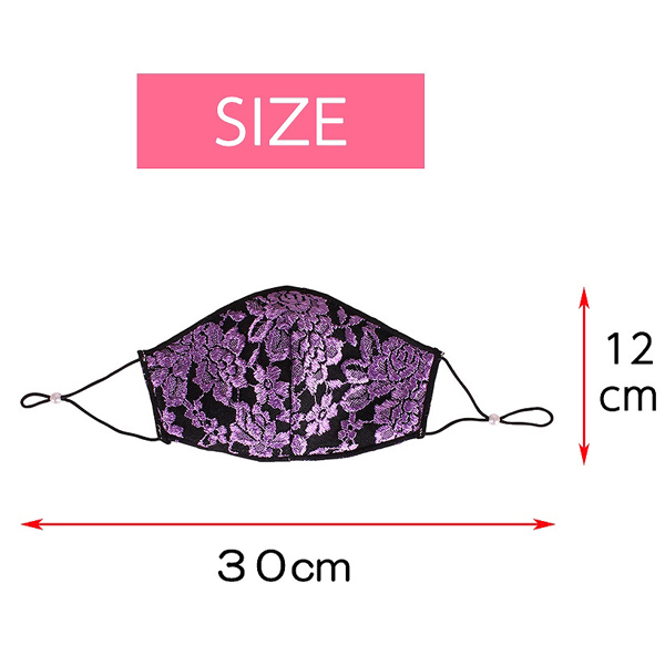 日々のマスクコーデに!紫の薔薇刺繍レースがお洒落な三層構造仕立ての大人用マスク。赤ちゃんにも優しいノンホルマリン加工を施し、クッション性が高く着け心地も柔らか♪また、メッシュ生地で通気性&速乾性にも優れているため、汗や蒸れによる化粧崩れにもしっかり対応!また、紐部分は調整式でフィットさせやすく、抗菌消臭仕様で気になる臭いも軽減します。不織布フィルター1枚付※こちらの商品は受注発注商品の為、ご注文から発送までに3、4営業日掛かる場合が御座います。