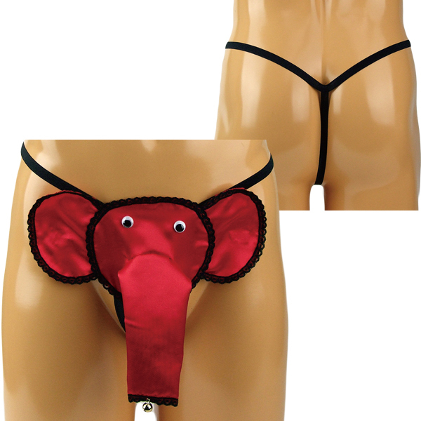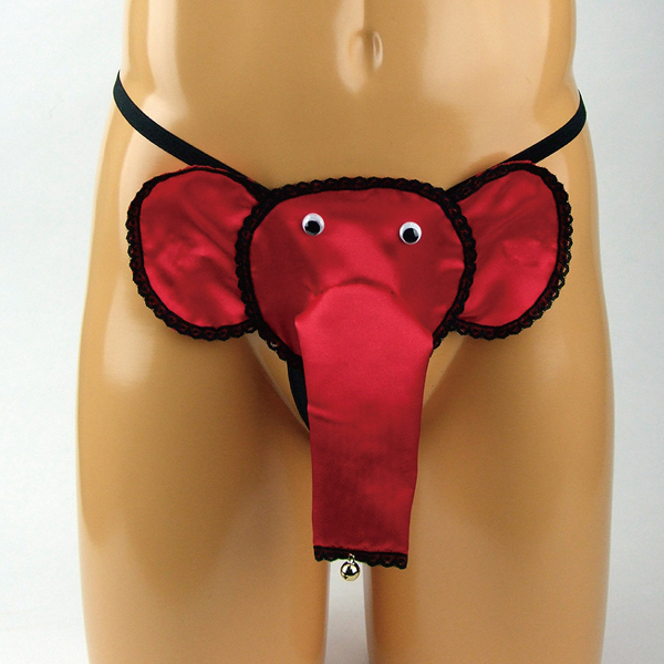 縁に黒レース加工を施したレッドカラーの鈴付きゾウさんGスト。インパクトのあるゾウさんデザインに光沢が加わることでより目立ち度アップ!ストリングタイプのゾウさんパンツです。日本製、Mサイズ