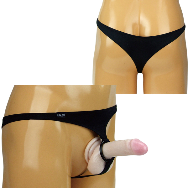 > メンズ 2wayストレッチ生地大リング付きTバック ブラック