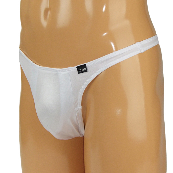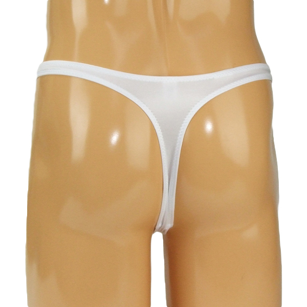 > メンズ 光沢ストレッチ生地玉袋付きTバック Mホワイト