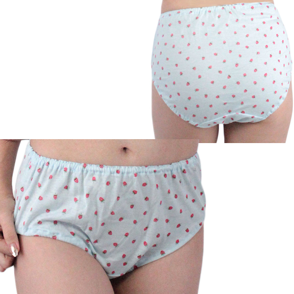 肌なじみの良いイチゴ柄コットン深履きショーツ サックス サックス