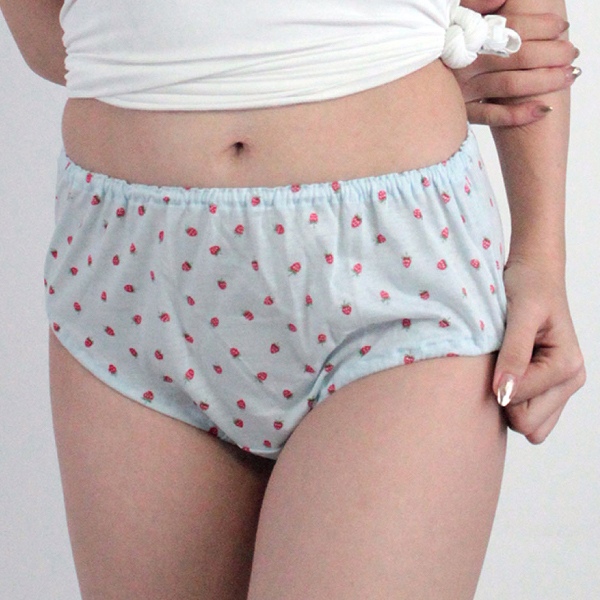 柔らかく肌に優しい綿生地を採用!いちご柄が可愛い日本製フルバック。アニコスや制服衣装との相性抜群♪通気性の良いコットン素材を使用しているので夏場のコスプレイベントでも蒸れにくく快適!◎サックス、Mサイズ