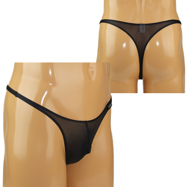 > メンズ 2wayストレッチシースルーフルシームTバック Mブラック