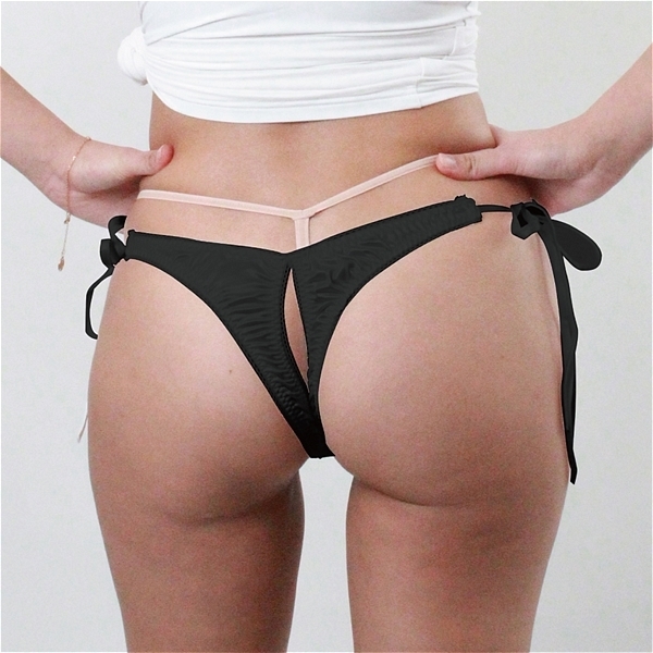 光沢が有り肌触りの良い生地レース付き脇ヒモ股ワレTB Lサイズ ブラック ブラック