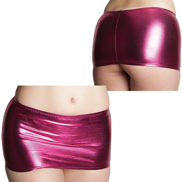 メタリック風の光沢で華やかにアピールするマイクロミニスカート♪伸縮性のある生地がぴったりとフィットしてタイトなラインを描き出します。ローズカラー、Mサイズ