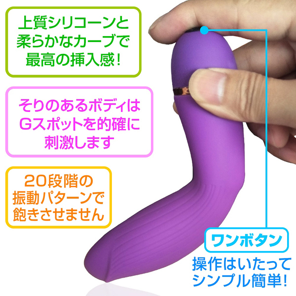 20種類の豊富なアクションを搭載し、ワンボタン式の簡単操作が魅力の初心者向け電池式バイブ。もっちり柔らかい高品質シリコンの質感とカーブを描いたフォルムが最高の挿入感を演出!Gスポを的確に狙い撃ち刺激します。生活防水製で丸洗い可能!持ち運びやすいハンディサイズ◎単3電池を1本使用