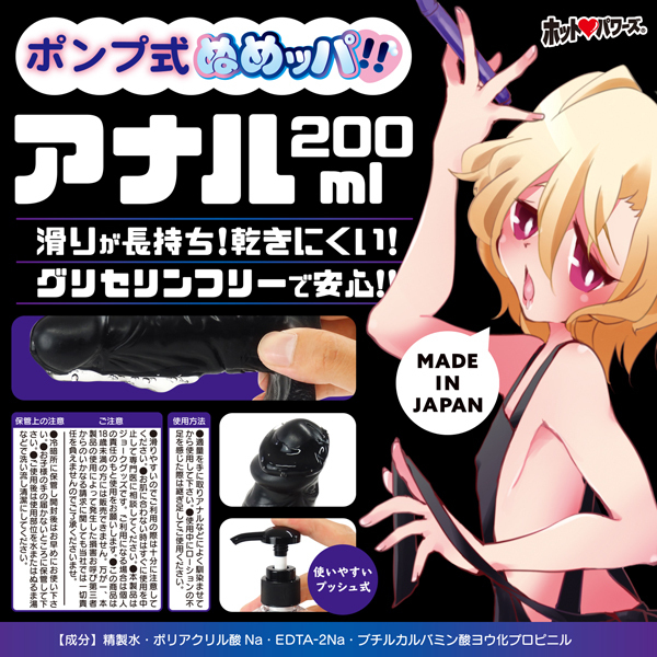 ヌルヌル膜でしっかりコーティング!液だれしにくく乾きにくいグリセリンフリーのアナル用ローション200ml。乾きにくいソフトと、垂れにくいハードの特性を取り入れたハイブリッドタイプ!入り口でこそぎ落されることなくしっかり膜を張り、滑りやすさも長時間持続。お尻への使用はもちろんオナホにも使用可能!取り出しやすいポンプ式ボトルを採用した日本製ローション。※こちらの商品は受注発注商品の為、ご注文から発送までに3、4営業日掛かる場合が御座います。