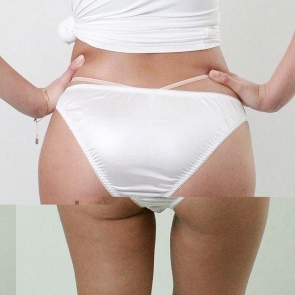 光沢ストレッチ&レース付きポケット付きフルバック ホワイト L ホワイト