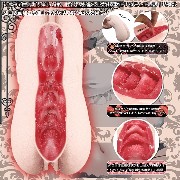 柔らかい素材を物理的に圧着して成形した非貫通オナホ「ソフトカバーなギッチギチ生膣マカロン」。内側と外側が別パーツで成形された「マカロン製法」なので充実した使用感が味わえます♪中はしっかりで外はフワフワのソフトカバータイプ!内部には粘膜層もあり3種の素材で構成されています。大きな三連返しヒダと細かなイボは上下を逆転させる事で全く異なる使用感が楽しめる!520gの大型ボディの素材には厚生労働省、食品衛生法第370号に準拠した「Magiceyes Skin」を採用しているので安心してご使用頂けます。ローション付属