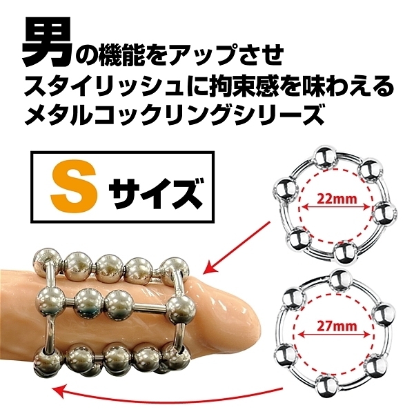 男の機能をアップさせスタイリッシュに拘束感を味わえるメタルコックリングシリーズ!中間に配置された2個と3個のメタルボールが、動く度に、上下へスライド。ファッション性と男らしさを兼ね備えたメタルリング。