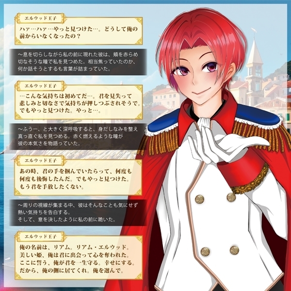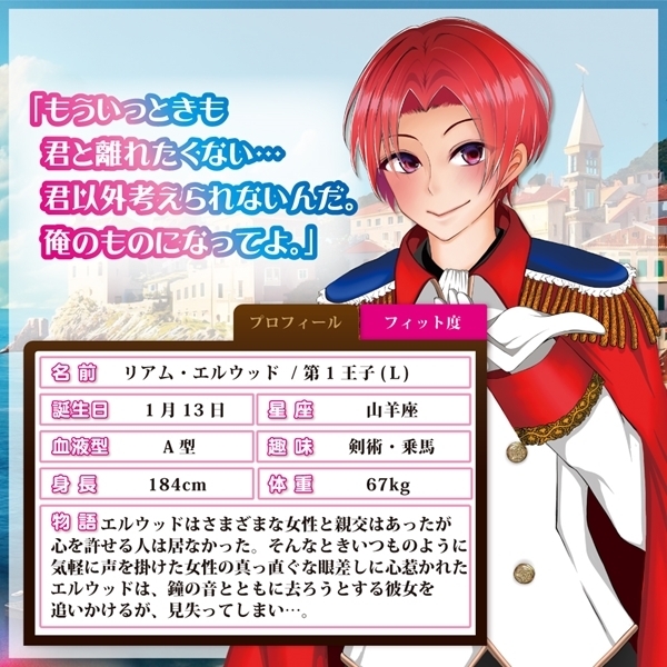 これは貴方だけの物語…。不思議な魔法使いに導かれ、お城の舞踏会へ参加することとなった貴女は運命の王子様に出会います…。選ぶのは貴女自身。さあ、運命の王子様はだれ…?◆リアム・エルウッド第1王子◆俺様だけど一途に貴女を愛してくれる誠実系男子。ちょっと強引だけど男らしくエスコートしてくれる彼のように、身も心もいっぱいにしてくれるサイズ感。初めては不安でも、次第に手放せなくなってしまうのが彼の最大の魅力。子犬のように寂しがり屋の一面も…?!
