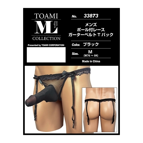 メンズ ポール付レースガーターベルトTバック ブラック ブラック
