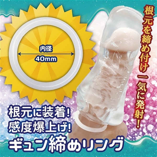 とろけるゼリーのようなホールと、ギュッと締めるリングの快感満点セット!とろけるやわもちホールと感度爆上げのギュン締めリング、さらにたっぷり楽しめるローションが付属。●吸いつきせまリング