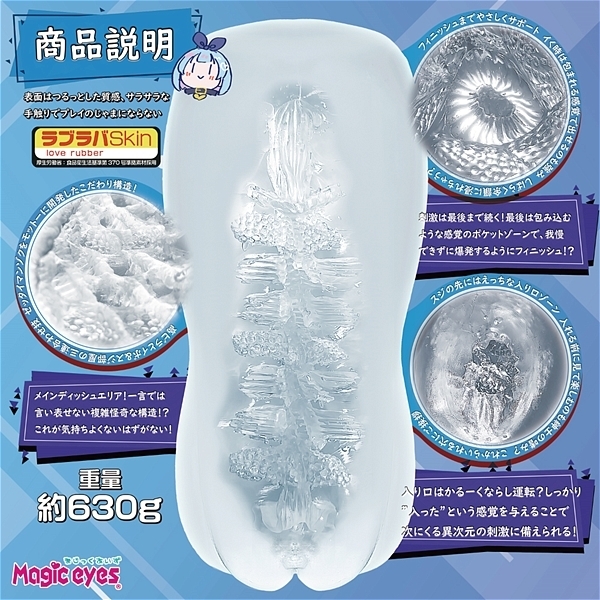 630gの極まる肉厚!奥に行けば行くほど肉厚になる希少な壷状肉厚構造!ねじれた高ヒダに細かなツブツブが刺激となりながら最奥部の子宮口で絞りとります。「すけすけ」は固めの硬度で設定されているので強めの刺激を求めている方に最適!厚労省、食品衛生基準第370号準拠素材のラブラバSkinを採用しているので安心してご使用して頂けます。