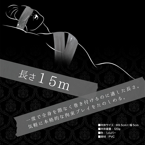 SMプレイの必須アイテム<ボンデージテープ>!気分で色を変えたいお客様の声にお応えし女体を彩る業界最多の7色をラインナップ!ノリを使わない万能テープで服や髪・肌を傷めず、お手軽カンタン拘束プレイ!濡れてもくっつく不思議な万能テープ科学の力でテープ同士が吸着。ベタつかないので片付けも簡単。髪や肌、繊細なグッズやテーブルにも安心して使えます。●カラー:シルバー