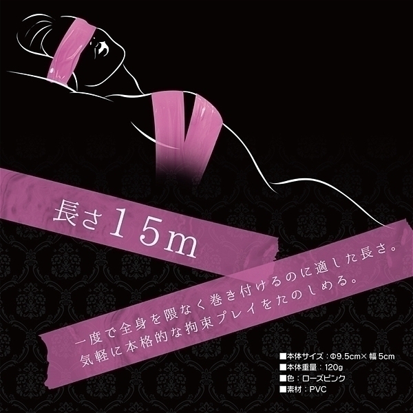 SMプレイの必須アイテム<ボンデージテープ>!気分で色を変えたいお客様の声にお応えし女体を彩る業界最多の7色をラインナップ!ノリを使わない万能テープで服や髪・肌を傷めず、お手軽カンタン拘束プレイ!濡れてもくっつく不思議な万能テープ科学の力でテープ同士が吸着。ベタつかないので片付けも簡単。髪や肌、繊細なグッズやテーブルにも安心して使えます。●カラー:ローズピンク