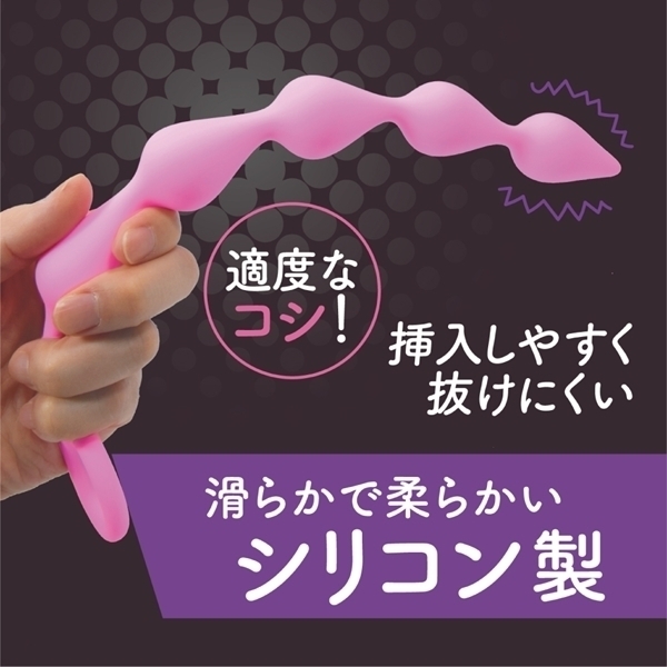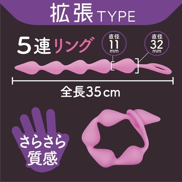 最大径32mmの大型ビーズでも涙型だから挿入もしやすい拡張タイプ。中上級者向けのサイズになりますのでメス化への追い込みサイズ。取っ手部のサイズは43mm全長350mmと全てシリコン素材の為、柔らかく丸洗いも出来て清潔に保っていただけます。