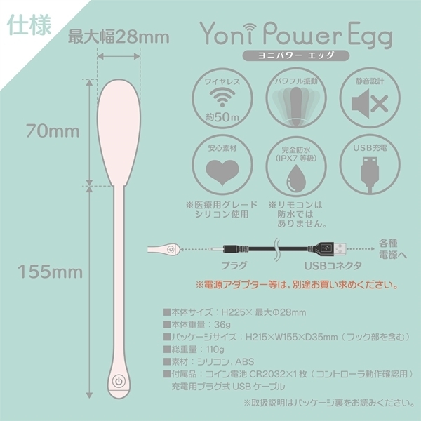 「ヨニパワー」は、女性器(ヨニ)の潜在能力を高める膣トレグッズ。インナーボールのような使い方で、きゅきゅっとデリケートゾーンを引き締め、感じやすさをエクササイズ。日本女性に合わせたサイズ感と医療用グレードのなめらかな高級シリコン・コーティングで、初心者の方も安心。リモコンは、ローターの状態が手元でわかる12LEDのスグレモノ。しかも、かわいい「しっぽアンテナ」で、一般グッズの数倍の飛距離(直線50m)を実現。