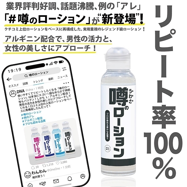 これが業界評判のアナルローション!おしりのメンテナンス成分満載!L−アルギニン配合で、男性の活力と、女性の美しさにアプローチ!クチコミ上位ローションをベースに再構成した、実用重視のレジェンド級ローション。デリケートなアナルのために、各種成分を配合した専用タイプです。さらにはメントールとカンフルでヒリヒリをやわらげ、清涼感あふれる快感をもたらします。